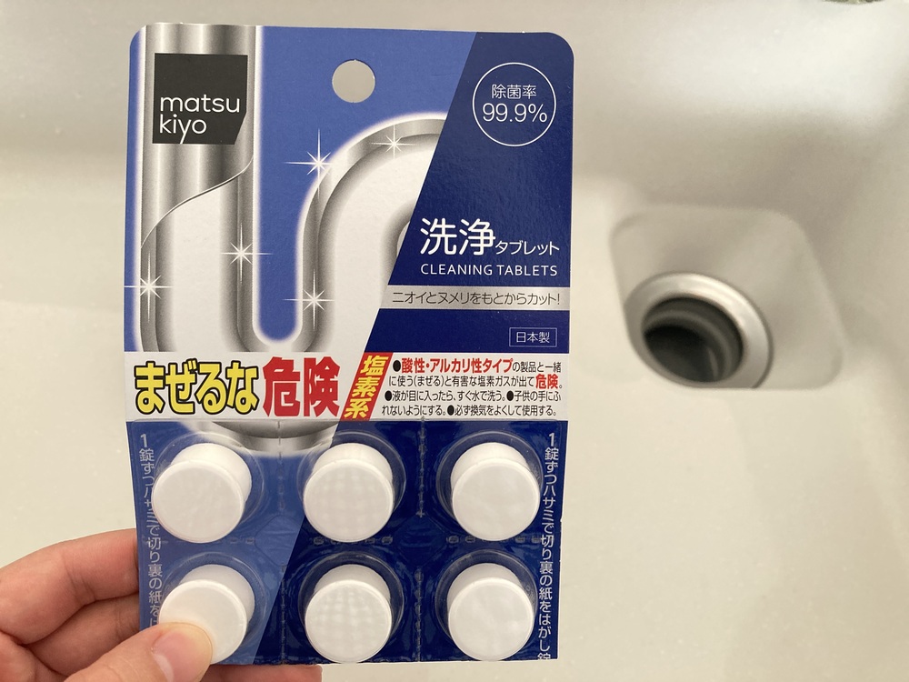 排水溝のヌメりには排水溝掃除用のタブレットを入れています。